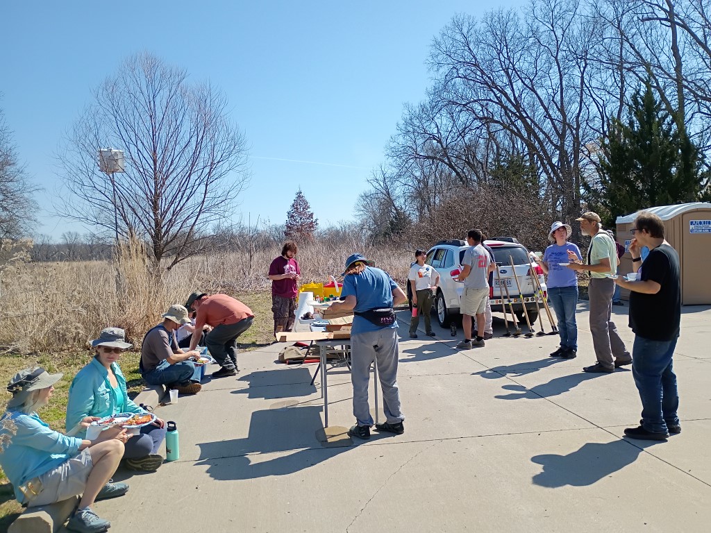 Stephen Bybee and Anna (Americorps) representing Missouri Conservation Corps (MCC) worked hard to recruited volunteers. Additional volunteers recruited by Columbia Audubon Society combined with the MCC crew formed the 26 member contingent. They pulled more honeysuckle than anyone could have imagined. Although it is difficult to see what has been accomplished today, just wait a few weeks and the lack of growing honeysuckle will be startling.