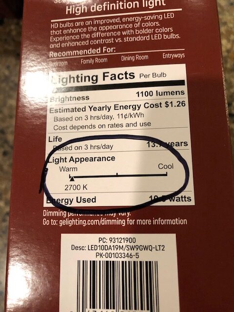 But what can individuals do to remove artificial light at night (a.k.a. ALAN)? If you’ve ever traveled to birding resorts in Arizona, especially in Portal and outside of Tucson (which is an official Dark Sky Community), you may have encountered the use of little nightlights in your cabin, warm bulbs for any outdoor lighting, and instruction to turn off the porch light. There are wonderful four packs of LED nightlights that are very affordable and energy efficient. We have used these for years to avoid having to leave a light on to see indoors at night, and I travel with one for hotel rooms. Conservation Chair Bill Mees made a big switch recently of changing his outdoor lights to warmer lights with lower lumens. This is a simple switch we can all make to outdoor lighting if it must stay on, though motion sensors are preferred, but warm lightbulbs are preferred for lower light pollution. The Mees’ have begun using the 5000K lightbulbs indoors and switched all of their outdoor lights to 2700K with no appreciable difference to human vision but a good deal for wildlife. Look on the label for anything lower than 3000K. Bill highlighted this information on his bulb box to share with you. For more Dark Sky resources and what YOU can do to promote dark skies at night, visit https://darkskymissouri.org/